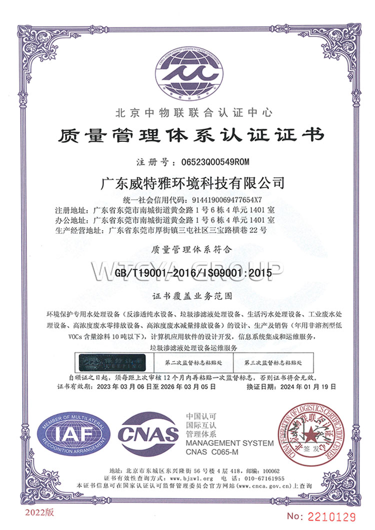 質(zhì)量管理體系認(rèn)證證書(shū)