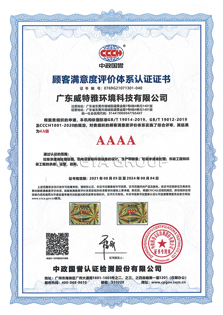 環(huán)境服務(wù)認(rèn)證證書(shū)