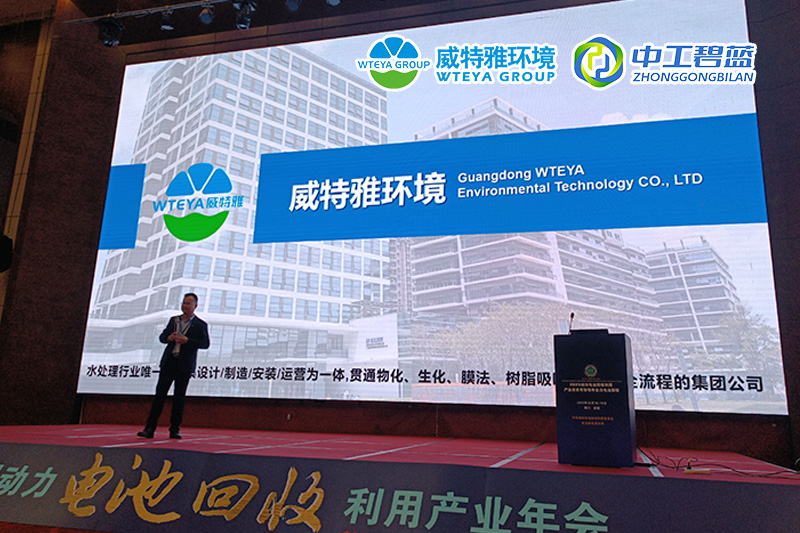 在展會(huì)現(xiàn)場,由總經(jīng)理胡祥代表威特雅集團(tuán)&中工碧藍(lán)環(huán)境進(jìn)行了以《鋰電行業(yè)水處理技術(shù)的突破革新》為題進(jìn)行匯報(bào)演講。向大家介紹了針對(duì)新能源鋰電池行業(yè)的全流程水處理方案,其中包括電池回收濕法處理工藝、沉鋰母液除鉈除氟、中水回用以及廢水零排放等解決方案,并向大家展示實(shí)際工程項(xiàng)目案例,以及處理水質(zhì)效果的對(duì)比、廢水處理效益等。