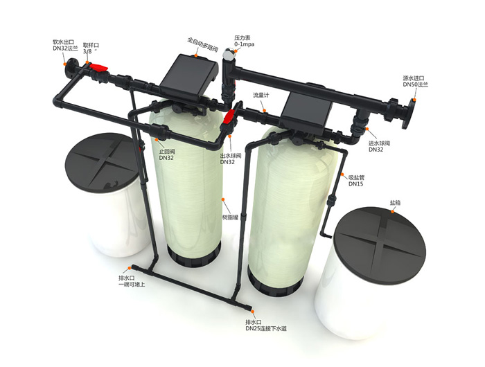 軟化水設(shè)備是由全自動(dòng)軟水控制器、鹽箱、強(qiáng)酸型鈉離子陽樹脂、樹脂罐(一般為不銹鋼樹脂罐和玻璃鋼樹脂罐)、以及軟水器配件組成。通過水的流量和時(shí)間控制的方式發(fā)出指令給電磁閥或多路通伺服閥,來完成軟化水設(shè)備的供水和再生,是工業(yè)鍋爐、冷卻循環(huán)水、煉鋼、軋鋼、大型變壓 器、民用熱水鍋爐等場合中應(yīng)用的硬水軟化處理設(shè)備。