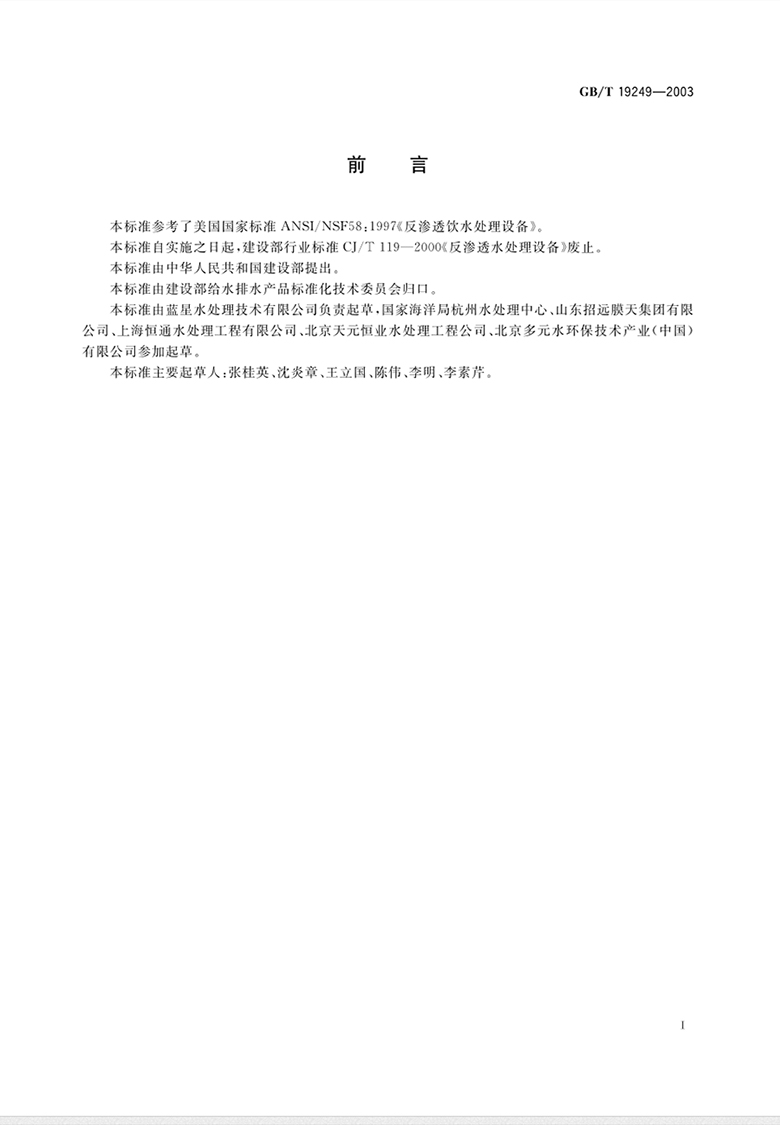 本標準編制過程中,參照采用了美國國家標準ANSI/NSF58:1997《反滲透飲水處理設(shè)備》。