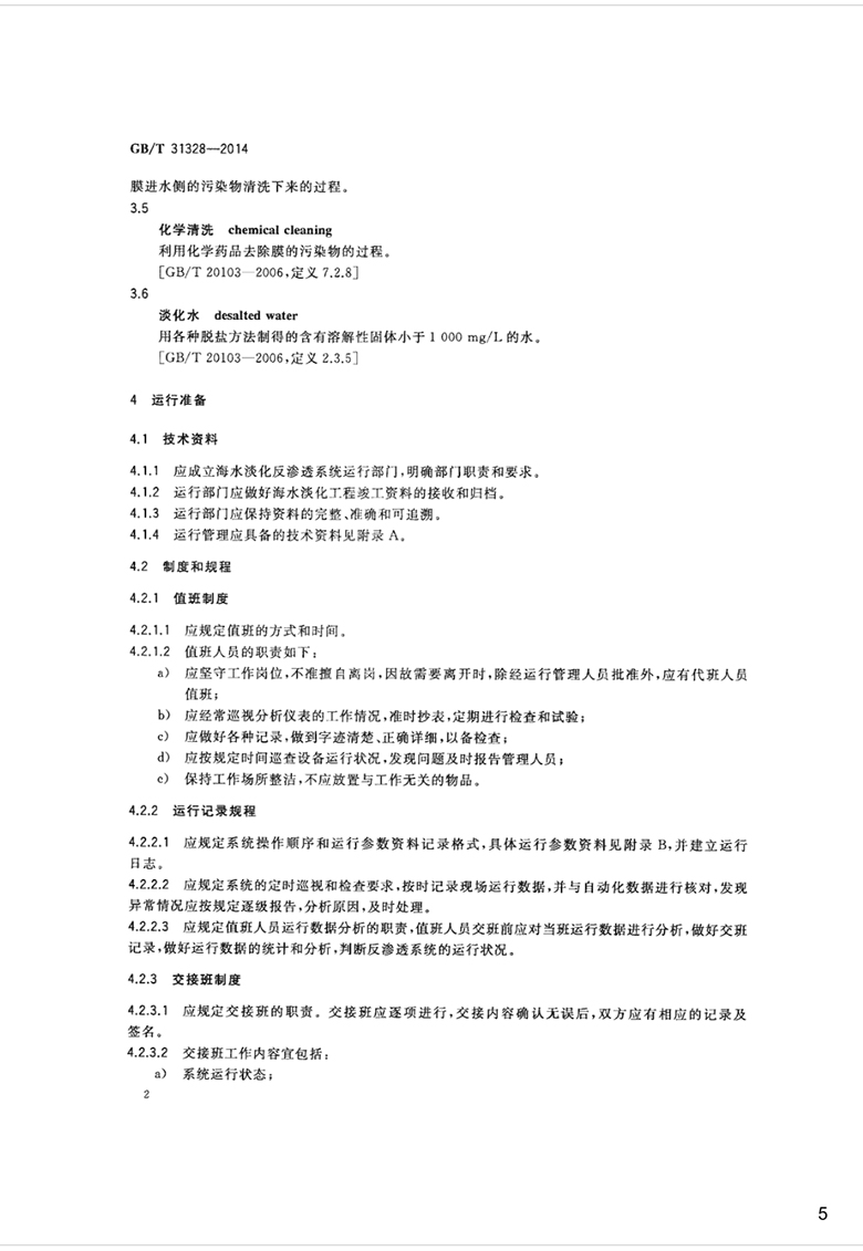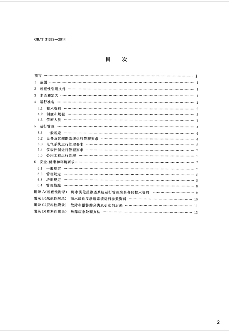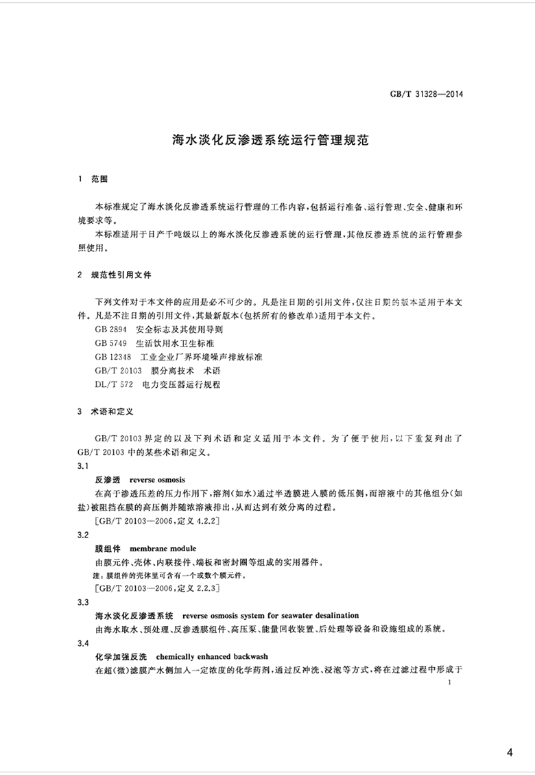 本標準適用于日產(chǎn)千噸級以上的海水淡化反滲透系統(tǒng)的運行管理,其他反滲透系統(tǒng)的運行管理參照使用。