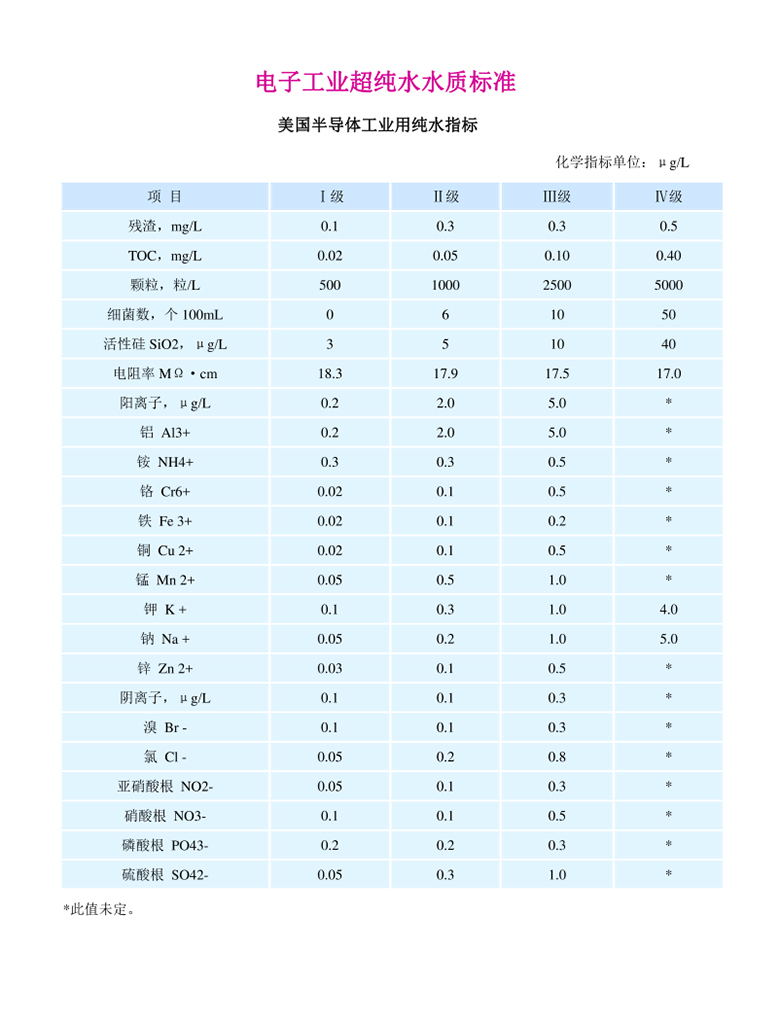 電子級超純水水質(zhì)標(biāo)準(zhǔn)