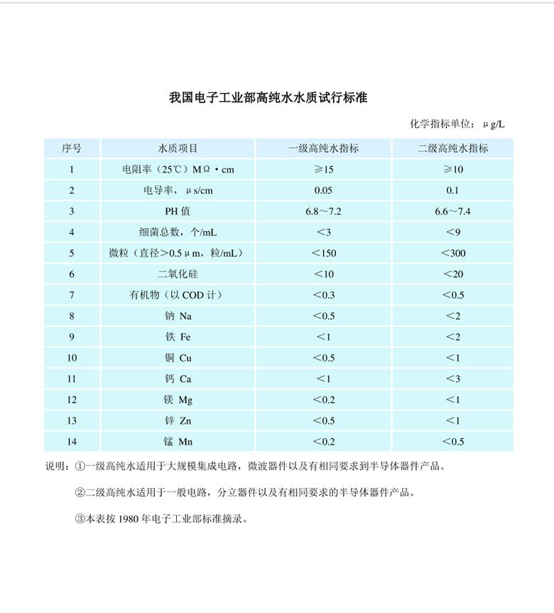 關(guān)鍵詞: 電子級超純水水質(zhì)標(biāo)準(zhǔn)