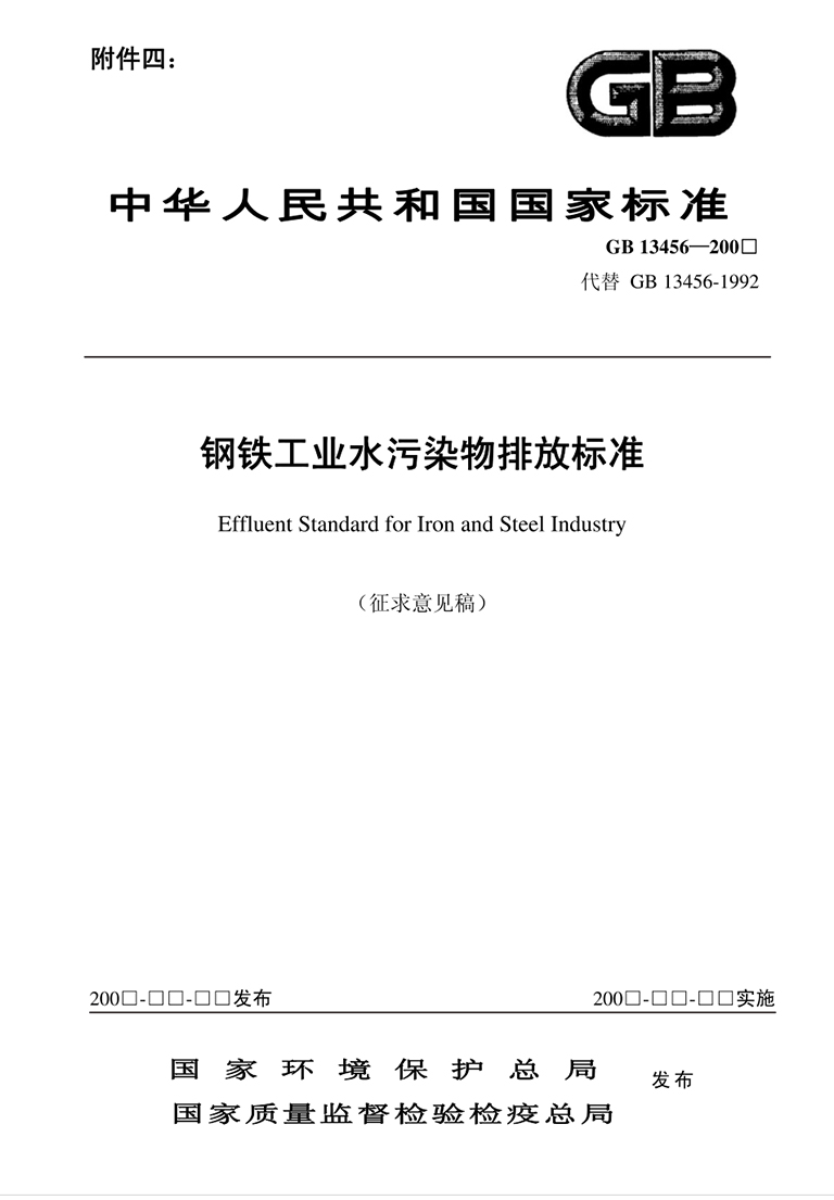 鋼鐵工業(yè)水污染物排放標(biāo)準(zhǔn)