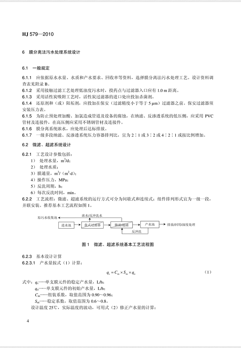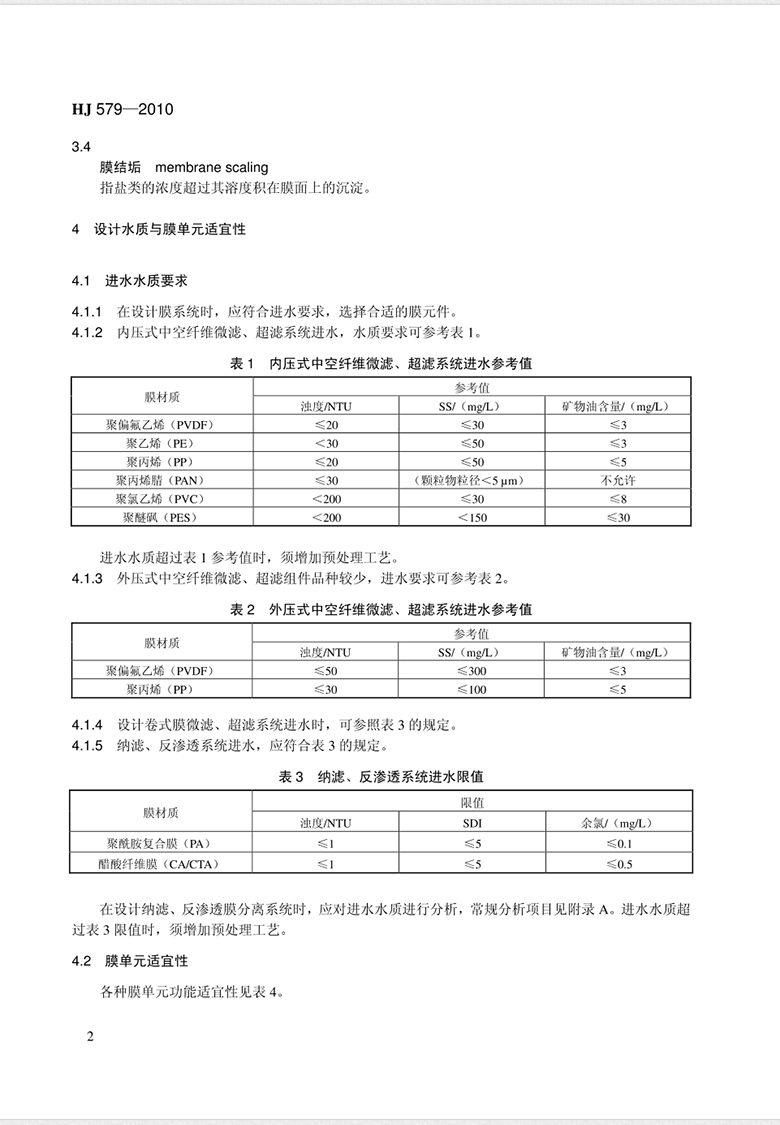 膜分離法污水處理工程技術(shù)規(guī)范不適用于以膜生物反應(yīng)器法和荷電膜進(jìn)行污水處理及回用的膜分離工程。