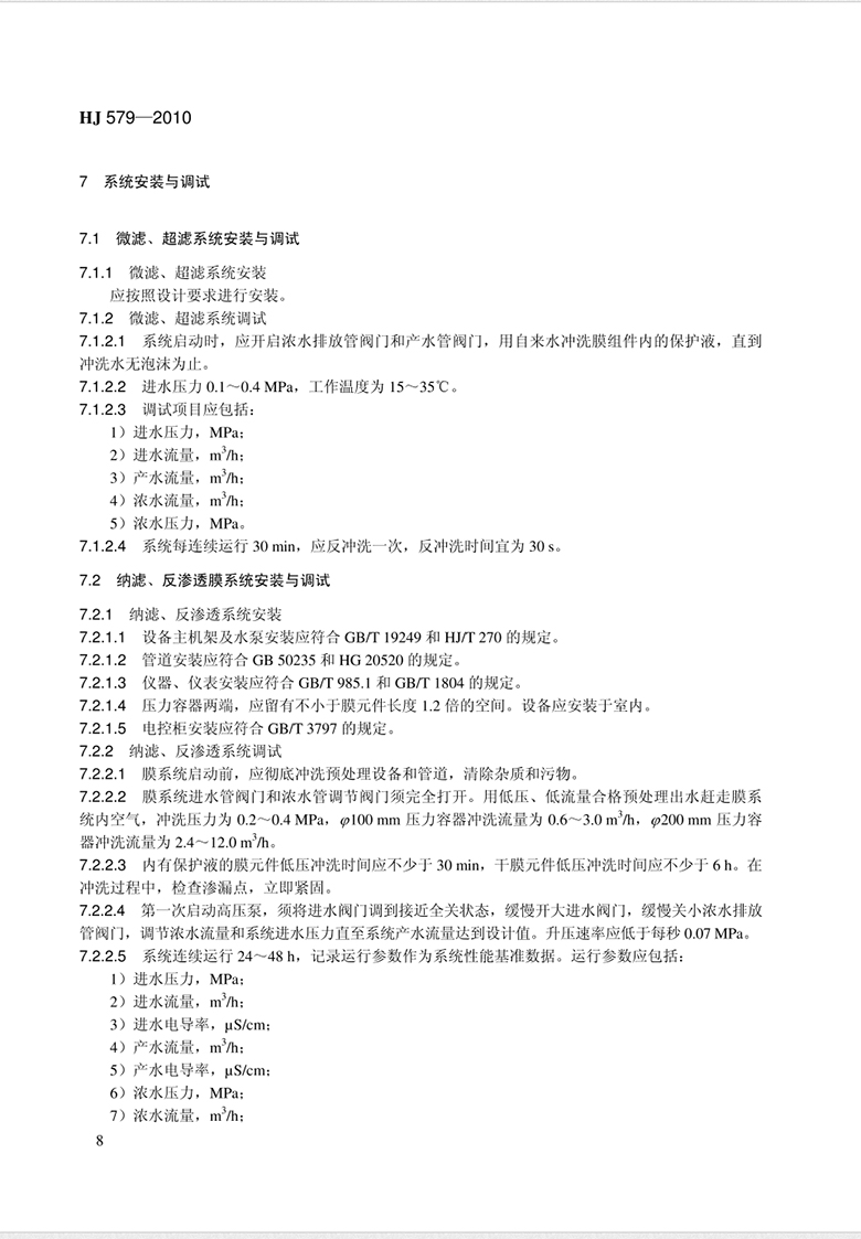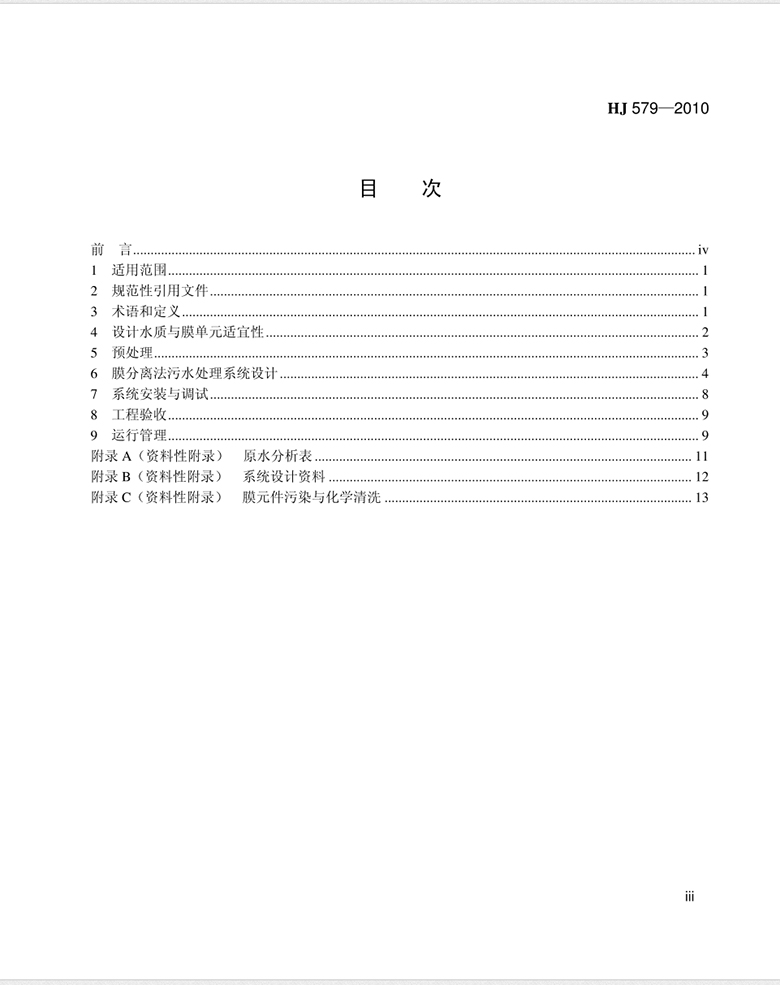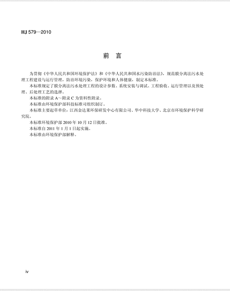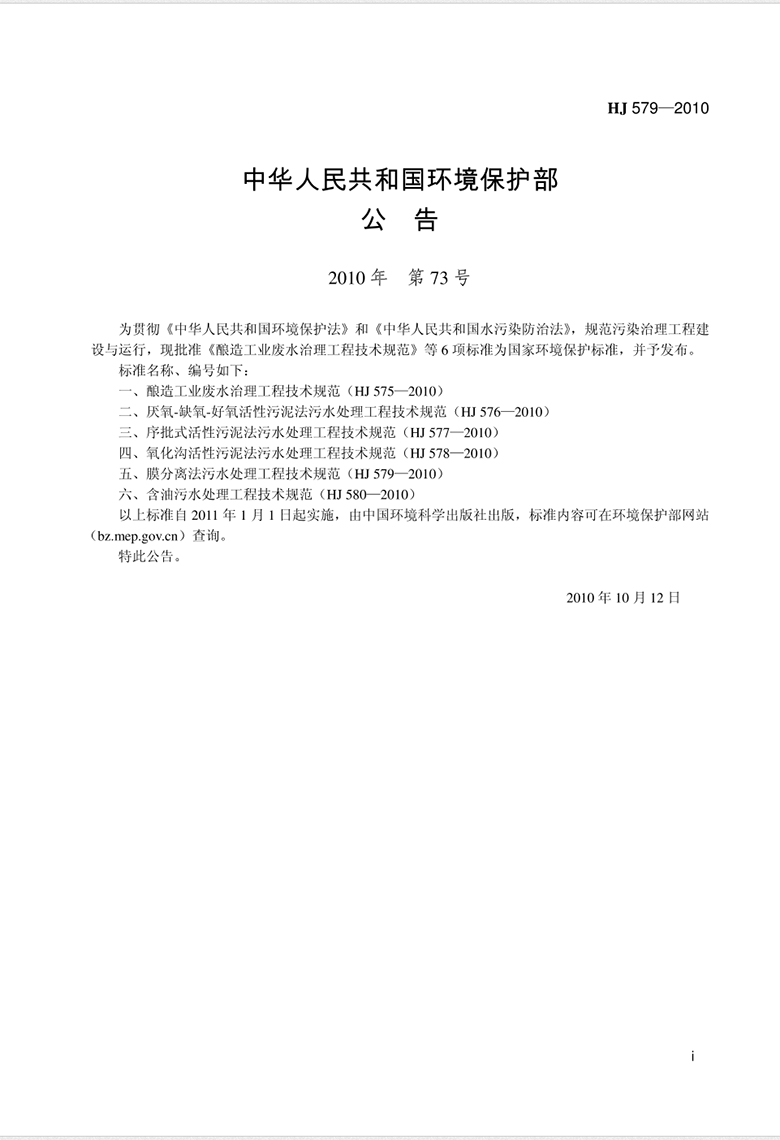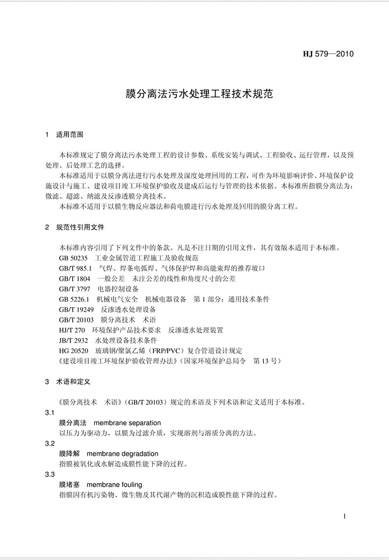 膜分離法污水處理工程技術(shù)規(guī)范規(guī)定了膜分離法污水處理工程的設(shè)計(jì)參數(shù)、系統(tǒng)安裝與調(diào)試、工程驗(yàn)收、運(yùn)行管理,以及預(yù)處理、后處理工藝的選擇。膜分離法污水處理工程技術(shù)規(guī)范適用于以膜分離法進(jìn)行污水處理及深度處理回用的工程,可作為環(huán)境影響評價(jià)、環(huán)境保護(hù)設(shè)施設(shè)計(jì)與施工、建設(shè)項(xiàng)目竣工環(huán)境保護(hù)驗(yàn)收及建成后運(yùn)行與管理的技術(shù)依據(jù)。本標(biāo)準(zhǔn)所指膜分離法為:微濾、超濾、納濾及反滲透膜分離技術(shù)。