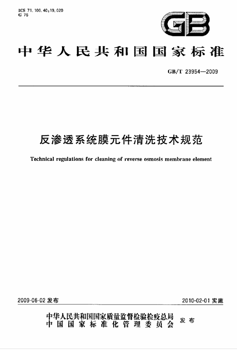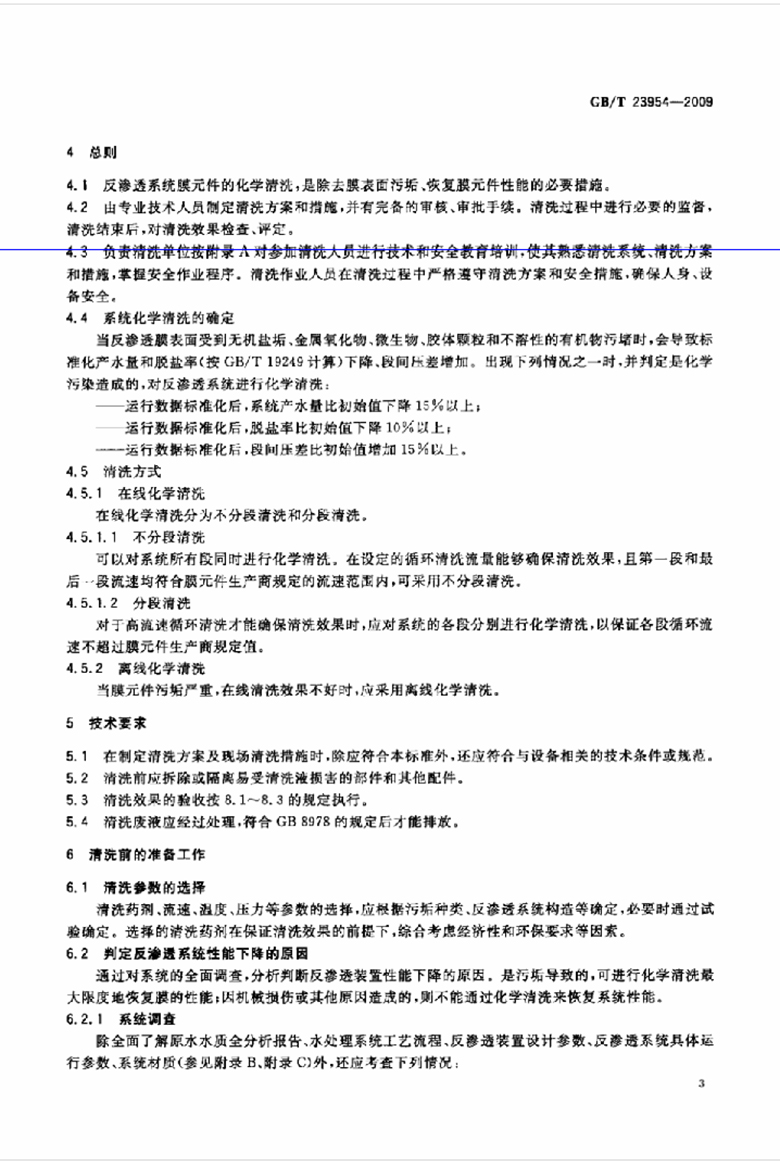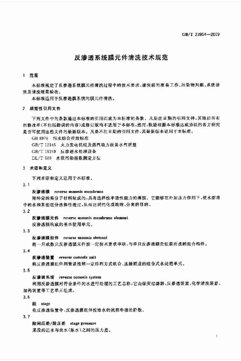 本標(biāo)準(zhǔn)適用于反滲透膜系統(tǒng)的膜元件清洗。